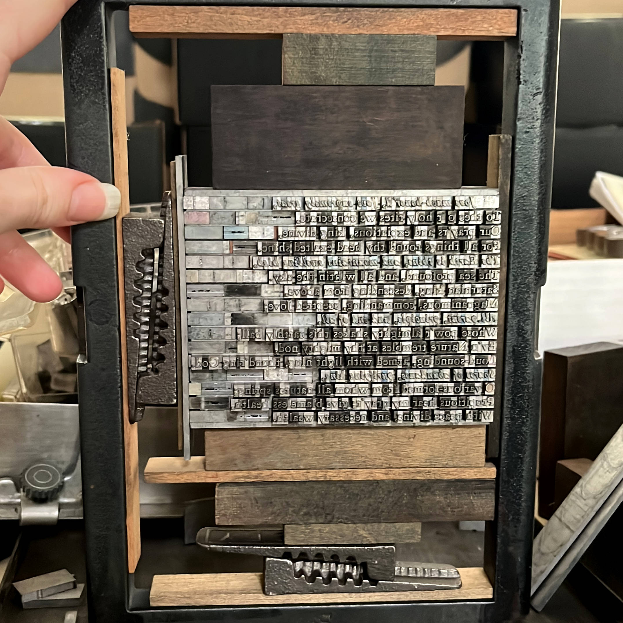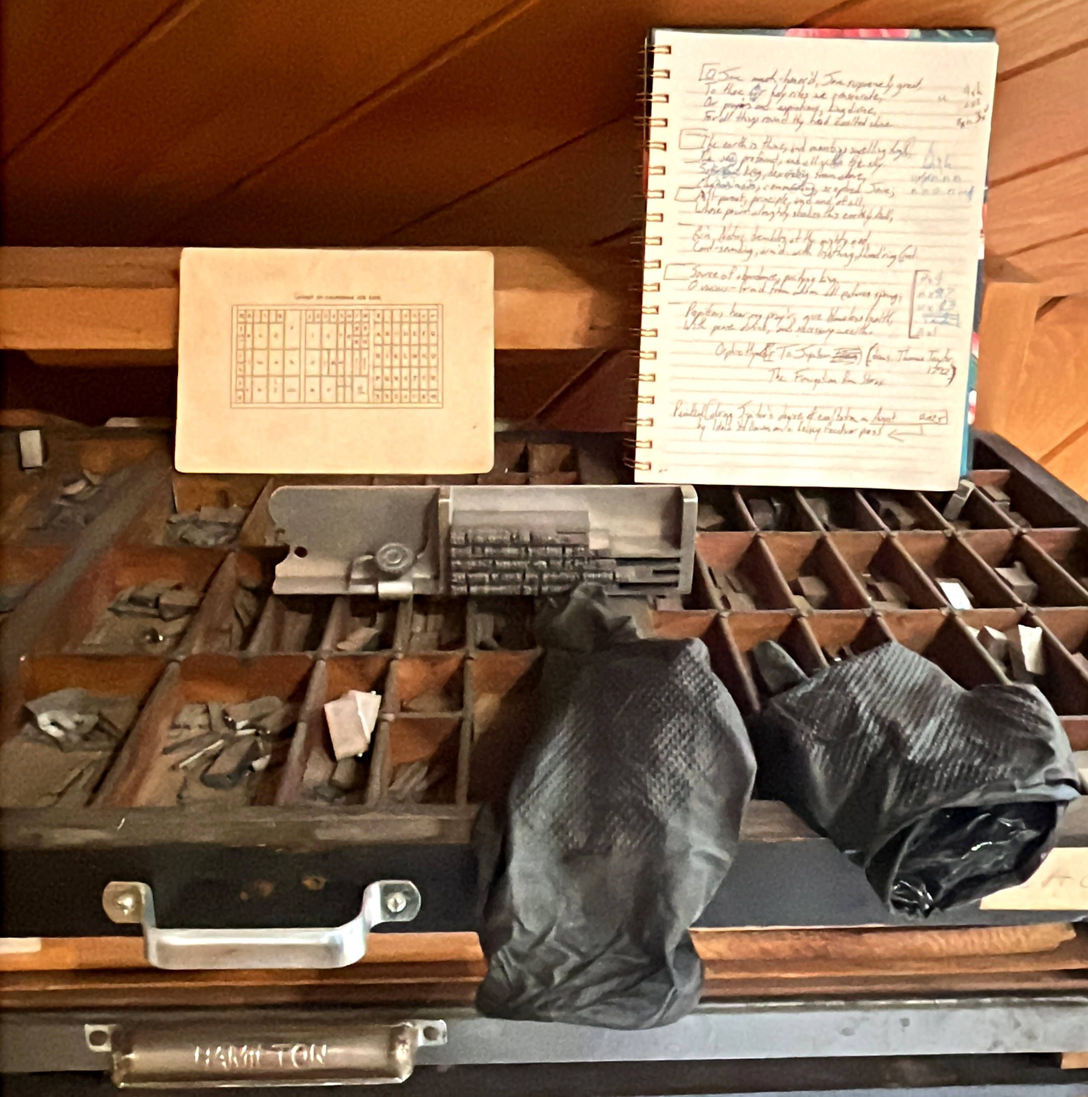 The letterpess type was set during multiple Jupiter hours prior to the printing. The hymns are set in Garamond Old Style, Roman and Italics, and Copperplate Gothic Bold. The hymns were printed with a Kelsey Excelsior 5×8 tabletop letterpress and suffumigated with a housemade Jupiter incense (below) during Jupiter day and hour on Thursday, August 14, 2025.